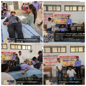राष्ट्रीय सेवा योजना इकाई, शासकीय पॉलीटेक्निक अंबिकापुर द्वारा जिला चिकित्सालय तथा रेडक्रॉस के सहयोग से स्वैच्छिक रक्तदान शिविर का आयोजन किया गया।कार्यक्रम के प्रथम सत्र में जिला चिकित्सालय की टीम द्वारा रक्तदान के महत्व, इसके लाभ के बारे में विस्तृत जानकारी प्रदान की गई। उन्होंने बताया कि रक्तदान एक महान सेवा है, जिससे कई लोगों का जीवन बचाया जा सकता है।तत्पश्चात शिविर में रक्तदान की प्रक्रिया प्रारंभ की गई, जिसमें छात्र-छात्राओं एवं संस्था के कर्मचारियों ने उत्साहपूर्वक भाग लिया। इस शिविर में कुल 21 यूनिट रक्तदान किया गय